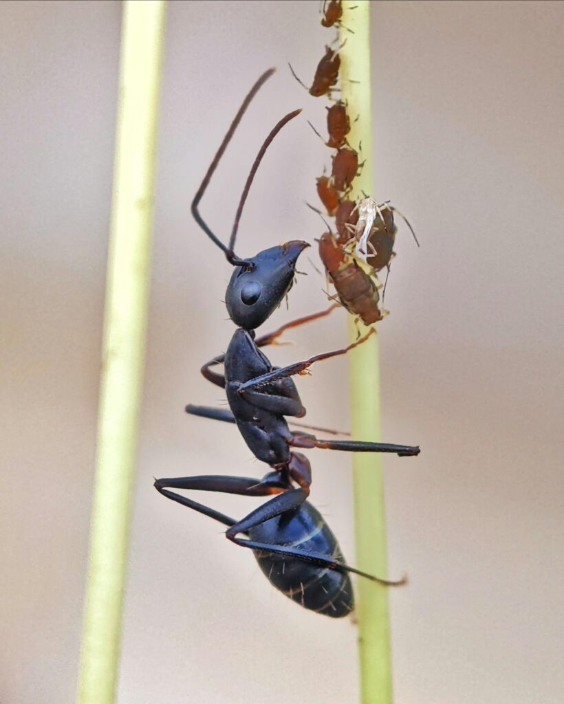 Dalam ekosistem alam yang lebih luas, semut hidup bertolong menolong dengan serangga lainnya seperti serangga koksid, afid (kutu daun) dan serangga sisik. Serangga perosak tersebut bukan sahaja menghisap cairan tumbuhan dan mengakibatkan daun atau batang menjadi kering, bahkan bertindak sebagai vektor kepada beberapa jenis penyakit tanaman. Simbiosis antara semut dengan serangga koksida dan afid sangat menarik – apabila semut bertindak melindungi serangga tersebut dan sebagai balasannya serangga koksida, serangga sisik dan afid menyediakan makanan kepada semut daam bentuk embun madu yang kaya dengan gula, asid amino dan mineral.